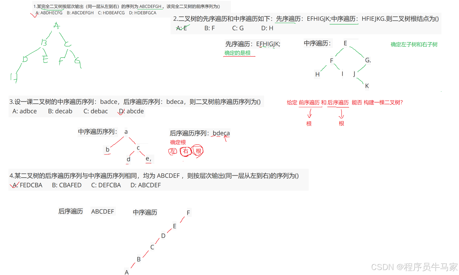 3.设一课二叉树的中序遍历序列:badce,后序遍历序列:bdeca,则二叉树前序遍历序列为()