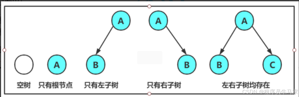 }注意:上述代码并不是创建二叉树的方式,真正创建二叉树方式后序详解重点讲解。 再看二叉树基本操作前,再回顾下二叉树的概念 ,二叉树是: