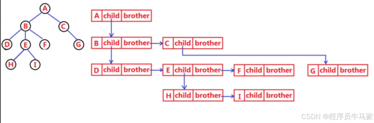 树结构相对线性表就比较复杂了,要存储表示起来就比较麻烦了,实际中树有很多种表示方式,如:双亲表示法,孩子表示法、孩子双亲表示法、孩子兄弟表示法等等。我们这里就简单的了解其中最常用的孩子兄弟表示法。