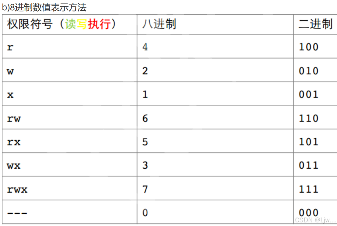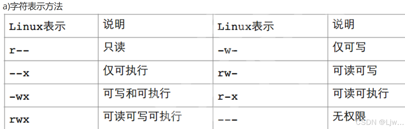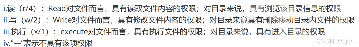 - rw-rw-r-- ........test.c,r可读,w可写,x可执行,-对应位置的权限位置,没有权限