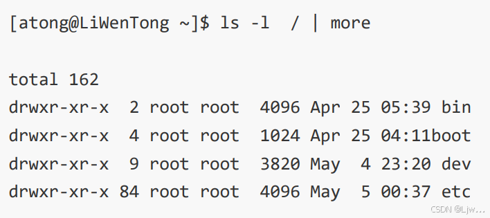 注意:ls显示文件名。ls -l(记得有空格),可以显示更多文件属性和信息,可以简写成LL(小写)(这里写成大写,因为小写像1)