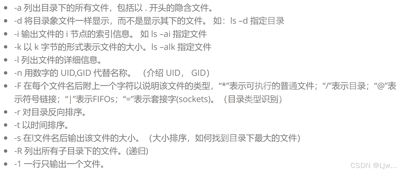 功能:对于目录,该命令列出该目录下的所有子目录与文件。对于文件,将列出文件名以及其他信息。