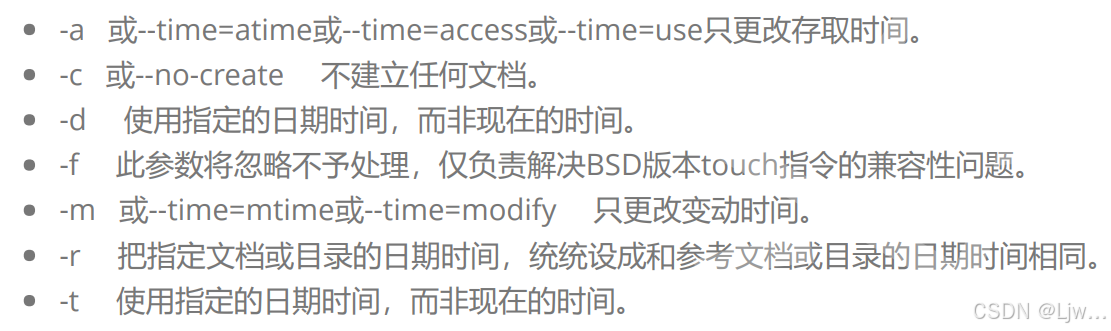 功能:touch命令参数可更改文档或目录的日期时间,包括存取时间和更改时间,或者新建一个不存在的文件。