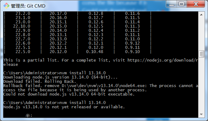接下来再使用nvm install nodejs的版本号 ,就成功了。