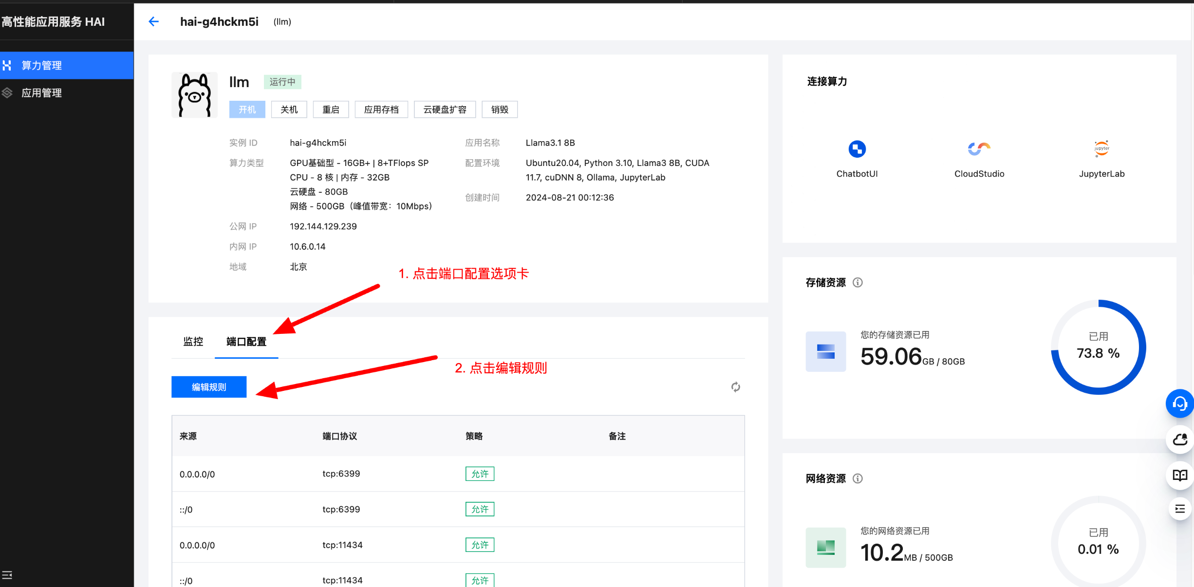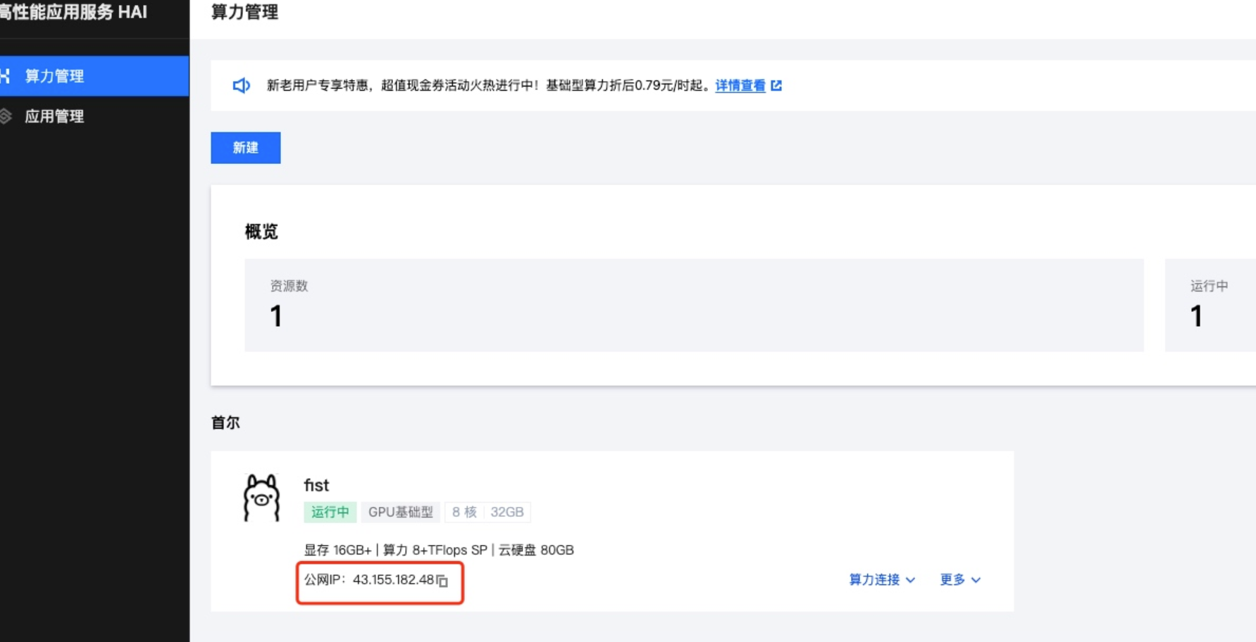 haibase_url将实例的ip进行替换,ip可以在HAI的控制台->算力管理中找到