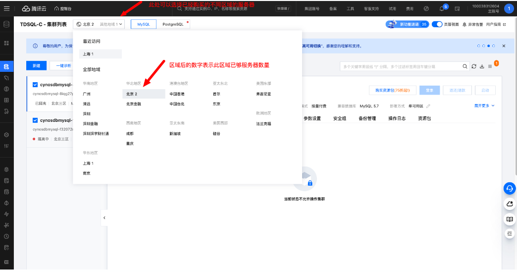 6.管理页面中选择指定区域的 TDSQL-C Mysql 服务器