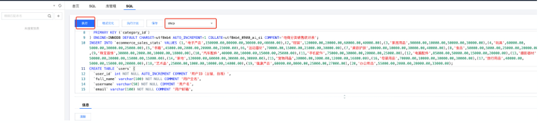 */将以上SQL复制到SQL执行窗口,确保当前数据库选中shop