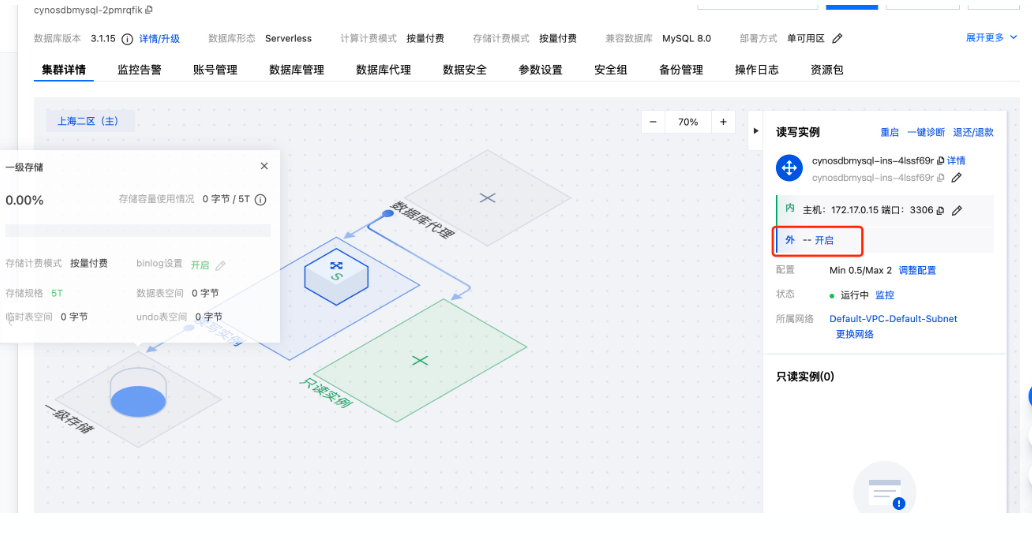 database 的配置详解:shophai 配置详解:database 中填入 TDSQL-C 的相关配置,db_host、db_port可以在集群列表中找到