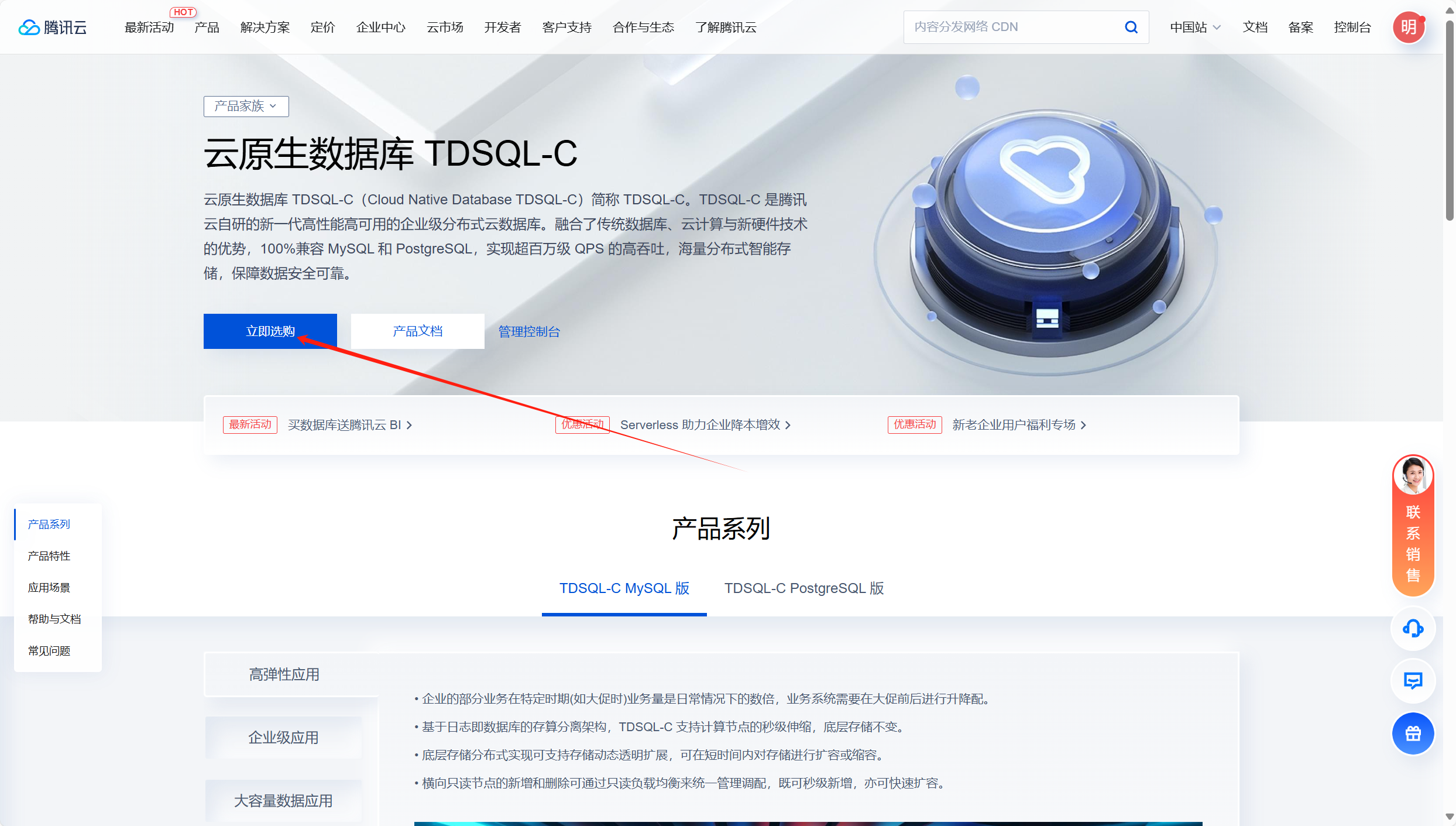 TDSQL-C Mysql 服务器点击链接:https://cloud.tencent.com/product/tdsqlc