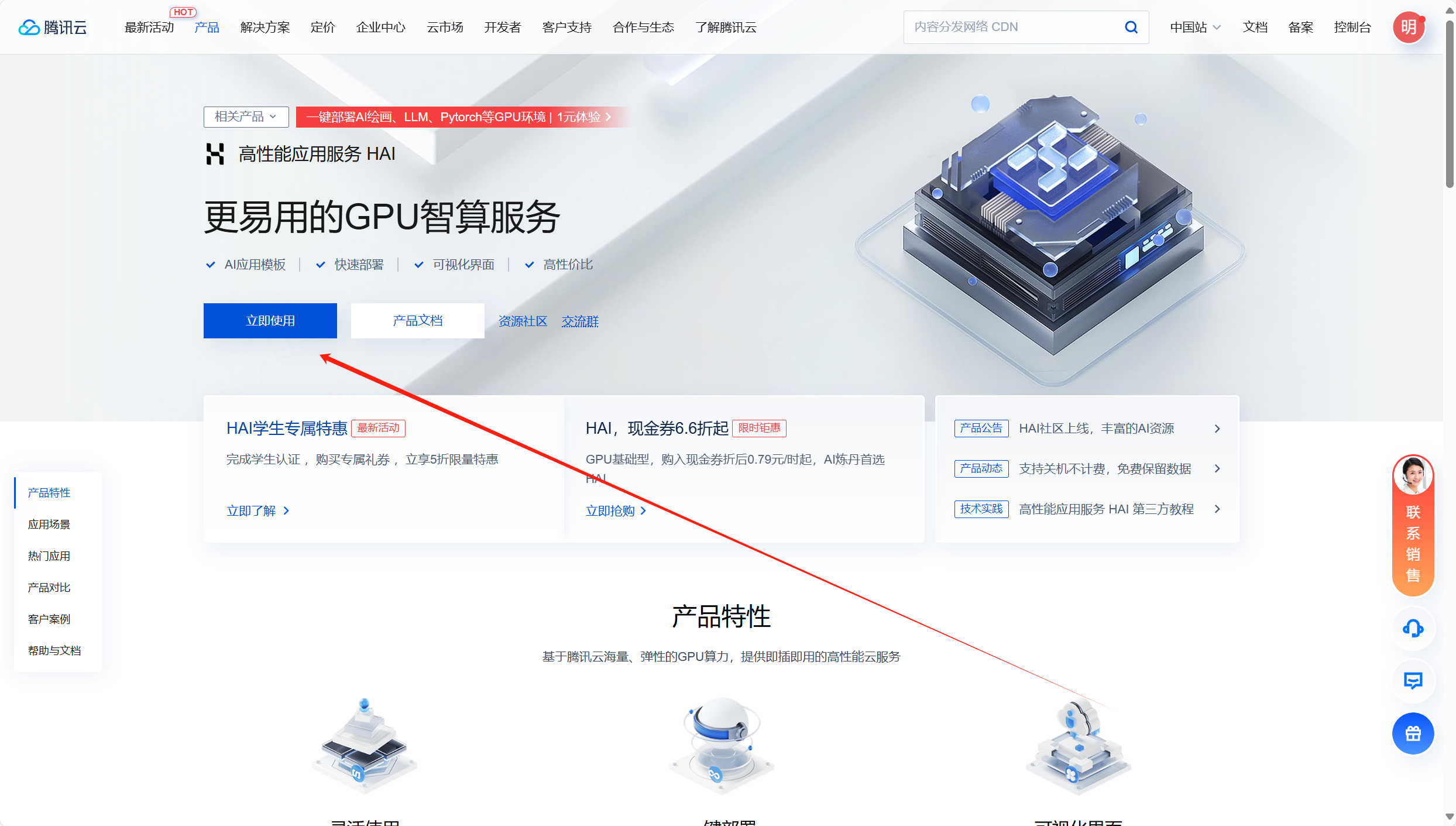HAI 官网官网地址:https://cloud.tencent.com/product/hai