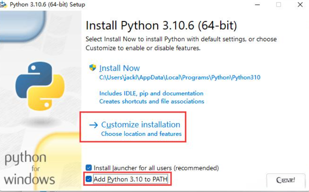 2.双击安装包安装python,window版本需要勾选add python to PATH