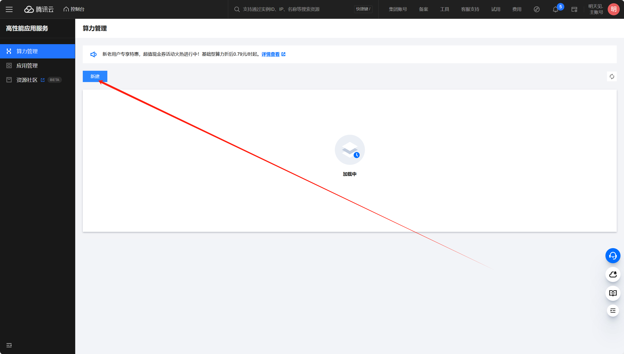 3.点击新建按钮,新建服务器(费用会在新建服务器并使用后才开始计费)