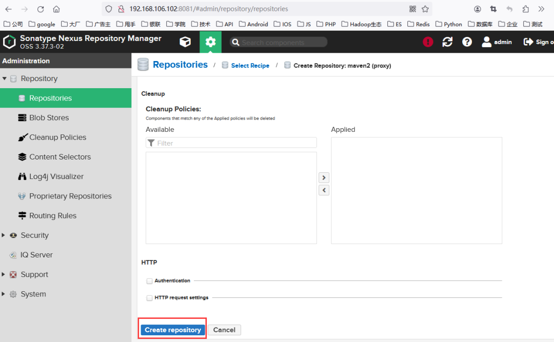 回到图10所示的页面,点击Create repository按钮,如图12所示。