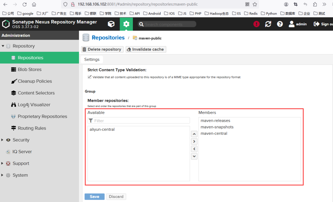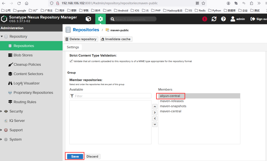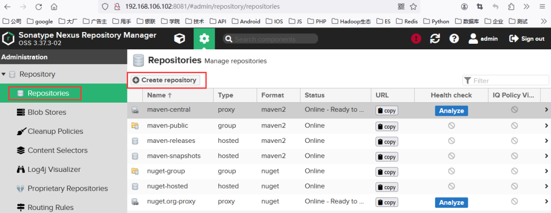 搭建完Nexus3环境后,我们还需要对其进行配置,具体配置的步骤如下所示。
