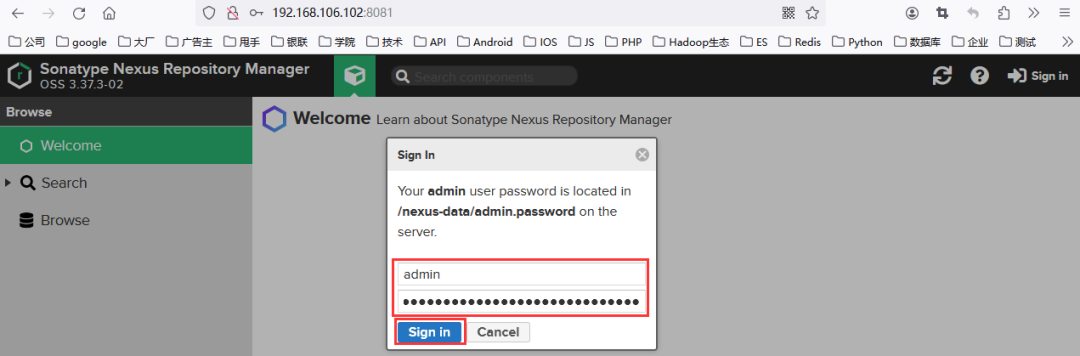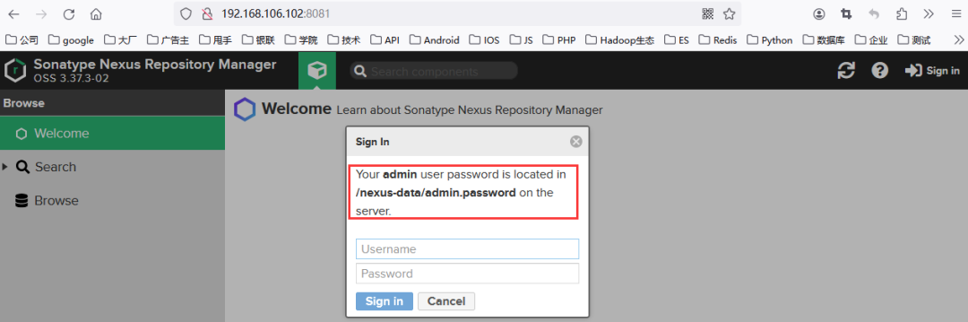 [root@binghe102 ~]# cat /usr/local/nexus-data/admin.password
