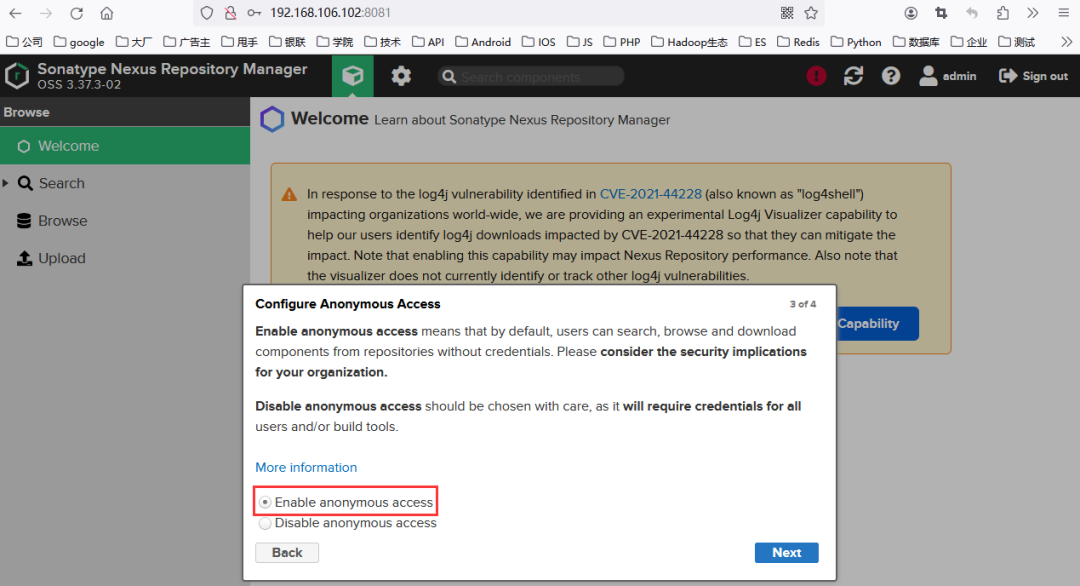 这里,自行记录新设置的密码,用于后续登录Nexus。