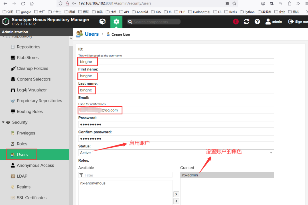 接下来,创建一个用于上传Jar包到仓库的用户,具体步骤如下所示。