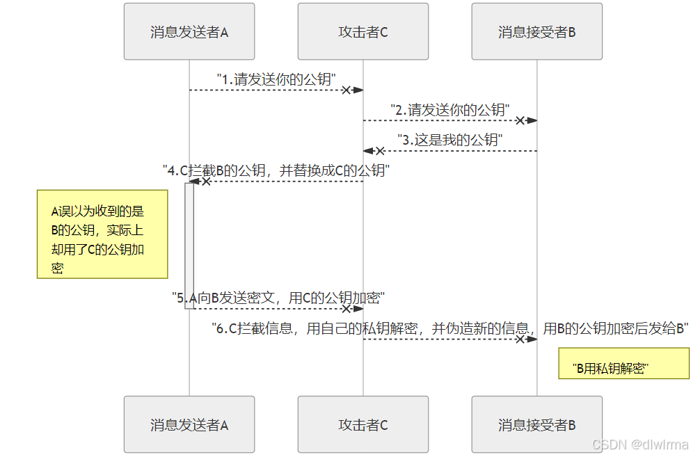 常见的网络攻击有HTTP协议下的中间人攻击和DDOS攻击 中间人攻击的完整流程: