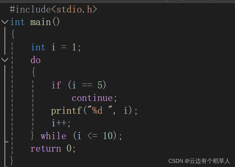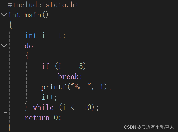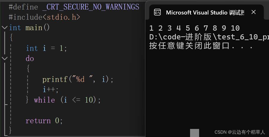 do-while 循环中先执行 do 后的语句,执行完语句,再去执行判断表达式,判断表达式的结果是!=0,则继续循环,执行循环语句;判断表达式的结果==0,则循环结束。
