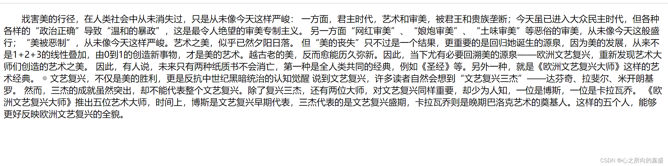 /* text-indent: 32px;em代表当前字体大小,2位当前字体的2倍 */