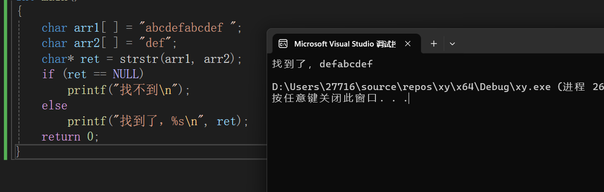 我们来尝试一下模拟strstr函数(这里小编学的有点模糊,因此可能会有些问题,还望理解,如果后面有时间会来修改)