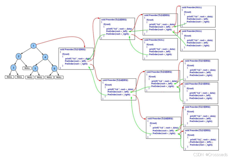 (1)前序遍历(Preorder Traversal 亦称先序遍历):访问根结点的操作发生在遍历其左右子树之前