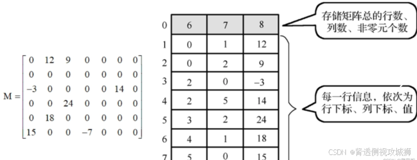 int arr[3][3] = {{1, 0, 0}, {4, 0, 6}, {0, 8, 0}}; // 定义稀疏矩阵