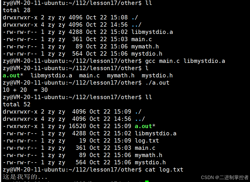 ar -rc libmyc.a *.o # 将所有.o文件打包成libmyc.a文件