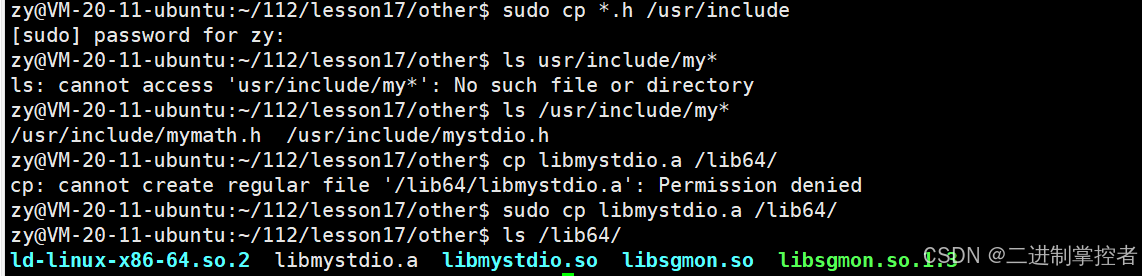 然后将之前形成的libmystdio.a文件以及两个.h头文件拷贝过来拷贝过来