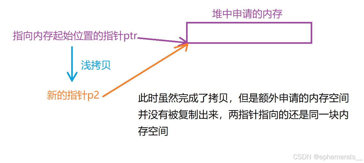 所以对于这种情况(类中有额外申请资源),我们就需要手动去写一个拷贝构造函数,实现深拷贝,将申请的内存也复制一份出来。