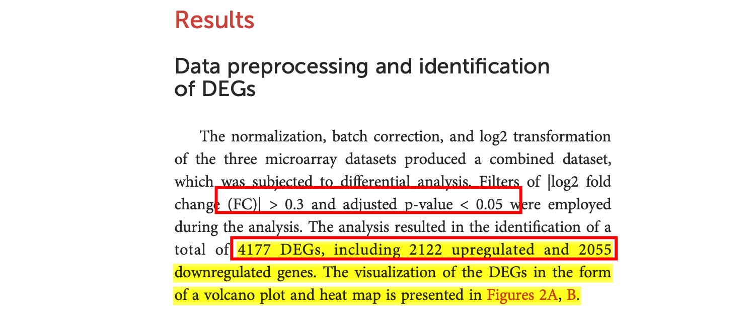 可以看到分析出来的差异基因的数目和原文章有些许差异,这是极为正常的现象,因为你的分析流程和作者的不可能完全一样,但是这无伤大雅,不同的分析流程只会影响到那些介于是与不是的差异基因,不会影响到本身效果比较显著的差异基因。