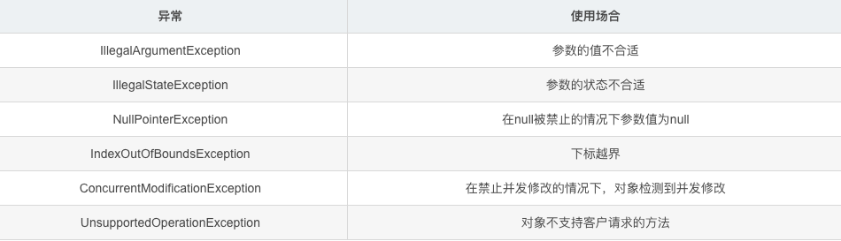 在Java中已经定义了许多比较常用的标准异常,比如下面这张图中列出的这些异常: