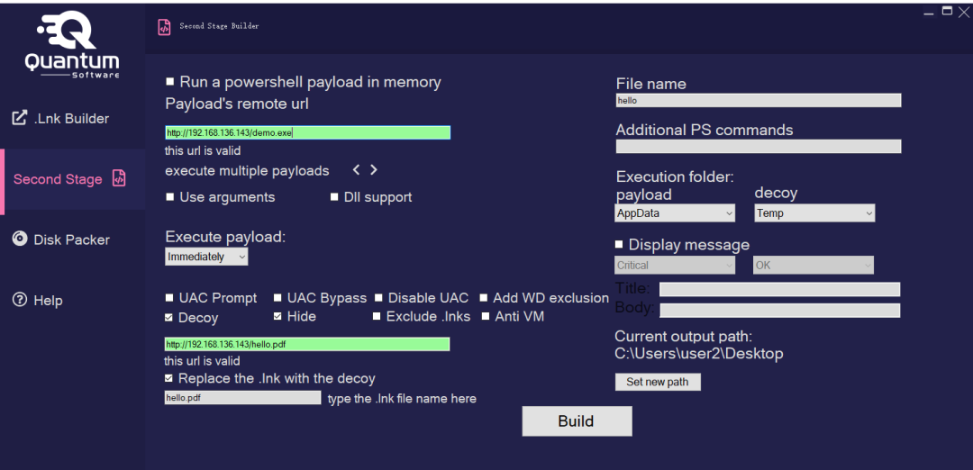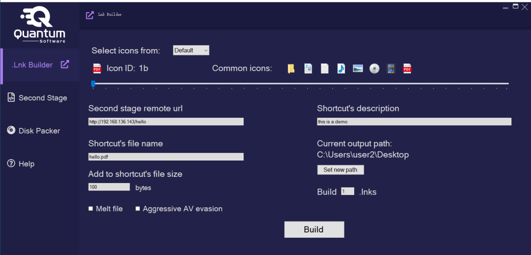 Quantum Builder :量子构建器,知名暗网黑客工具,用于lnk快捷方式攻击。