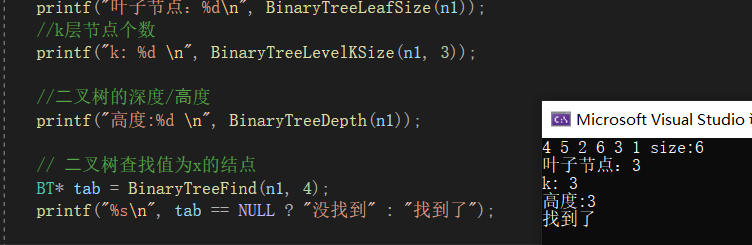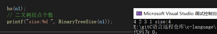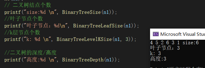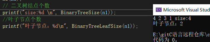 printf("叶子节点:%d\n", BinaryTreeLeafSize(n1));
