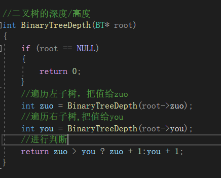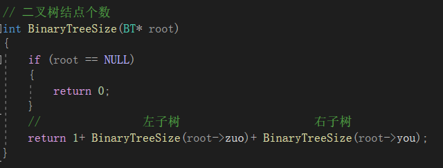 return 1+ BinaryTreeSize(root->zuo)+ BinaryTreeSize(root->you);
