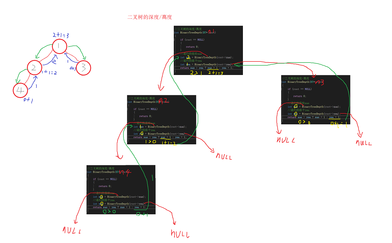 printf("高度:%d \n", BinaryTreeDepth(n1));