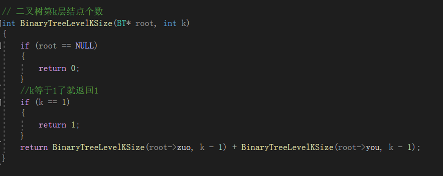 return BinaryTreeLevelKSize(root->zuo, k - 1) + BinaryTreeLevelKSize(root->you, k - 1);