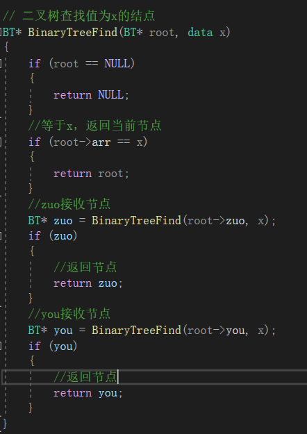BT* zuo = BinaryTreeFind(root->zuo, x);