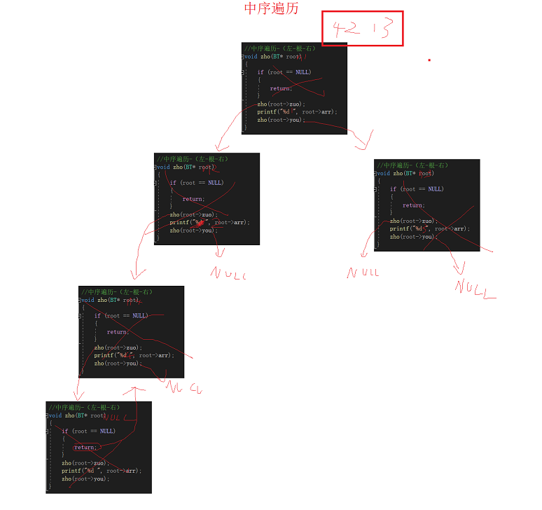 按照规则,⼆叉树的遍历有:前序/中序/后序的递归结构遍历: