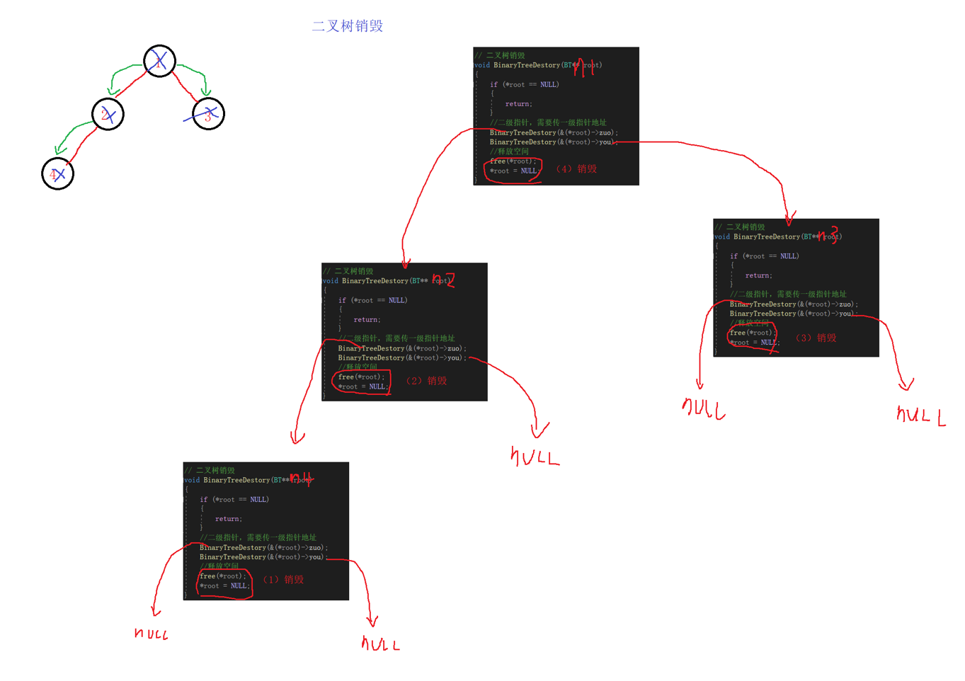 根结点的左⼦树和右⼦树分别⼜是由⼦树结点、⼦树结点的左⼦树、⼦树结点的右⼦树组成的,因此 ⼆叉树定义是递归式的,后序链式⼆叉树的操作中基本都是按照该概念实现的。