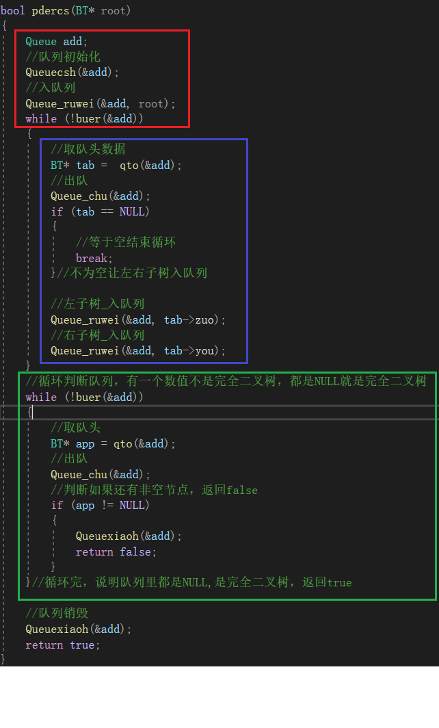 }//循环完,说明队列里都是NULL,是完全二叉树,返回true