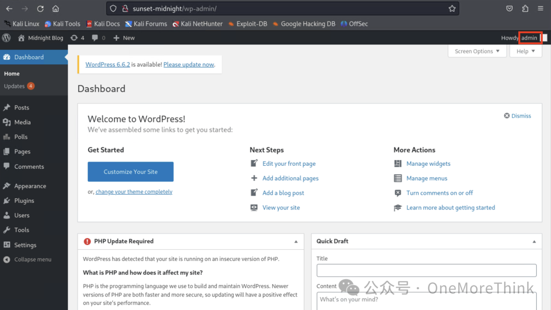 成功访问网站后,从logo可以看出该网站由wordpress搭建