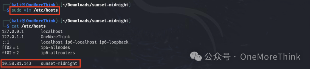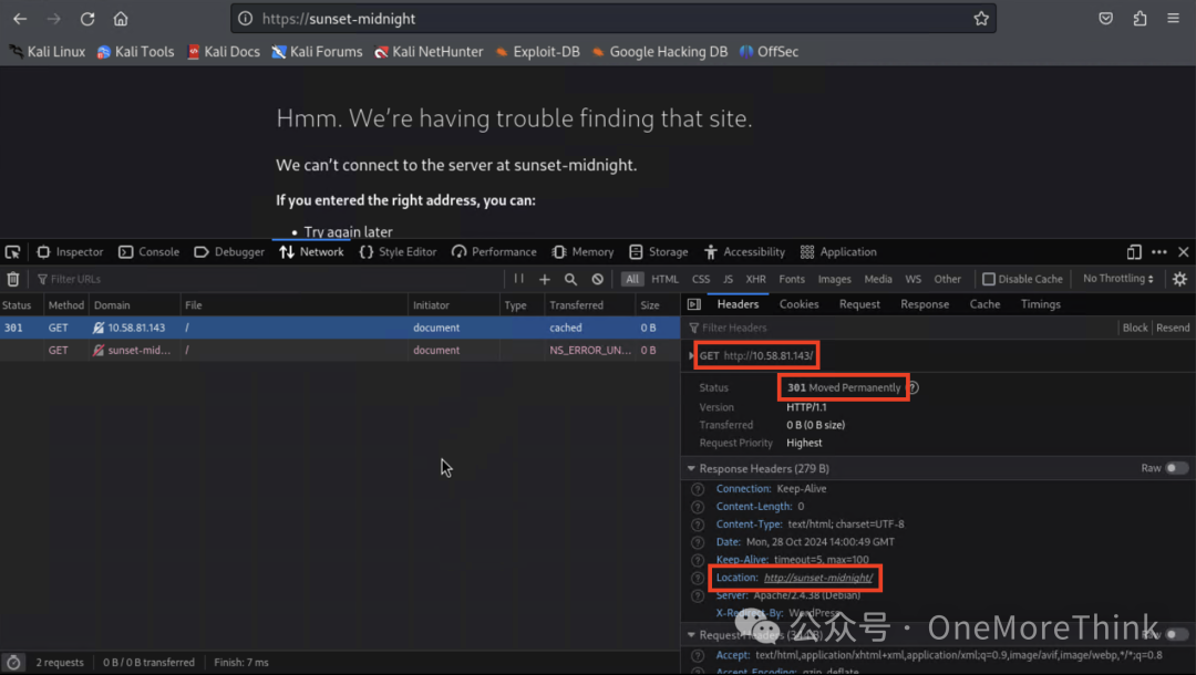 访问http://10.58.81.143 会301跳转到http://sunset-midnight/,但跳转失败,需要添加域名解析