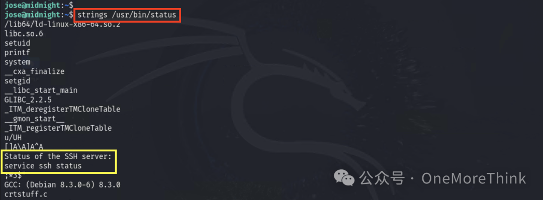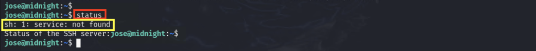 查看/usr/bin/status程序中的字符串内容,发现是执行查看ssh服务状态的命令:service ssh status
