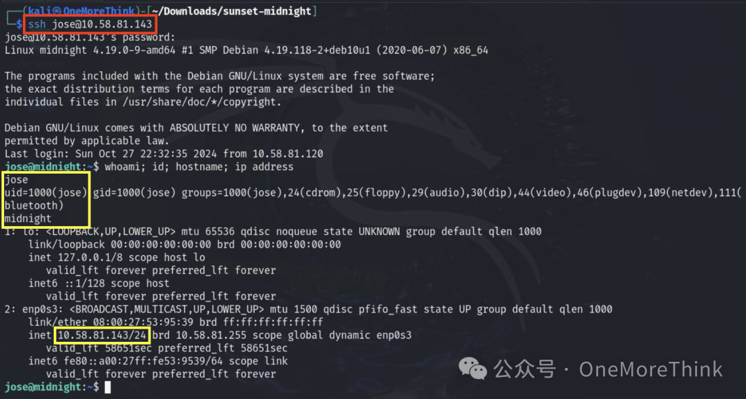 通过密码喷洒攻击,使用mysql的jose帐号尝试登录ssh服务,竟然成功,获得第五个权限:服务器的jose权限