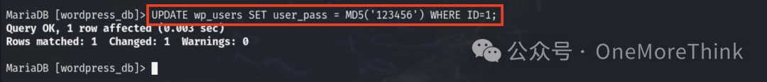 将管理员的密码改为123456,获得第二个权限:wordpress的admin权限