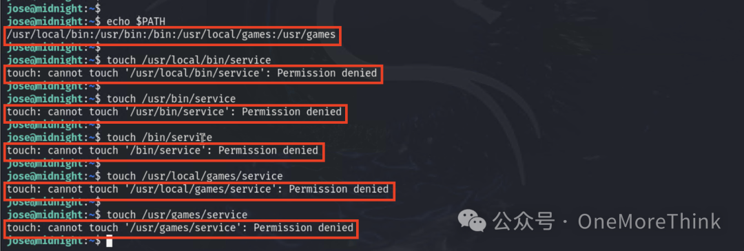 那我们就赋予service命令的内容是返回一个shell吧,但我们没有在环境变量中的目录下创建文件的权限
