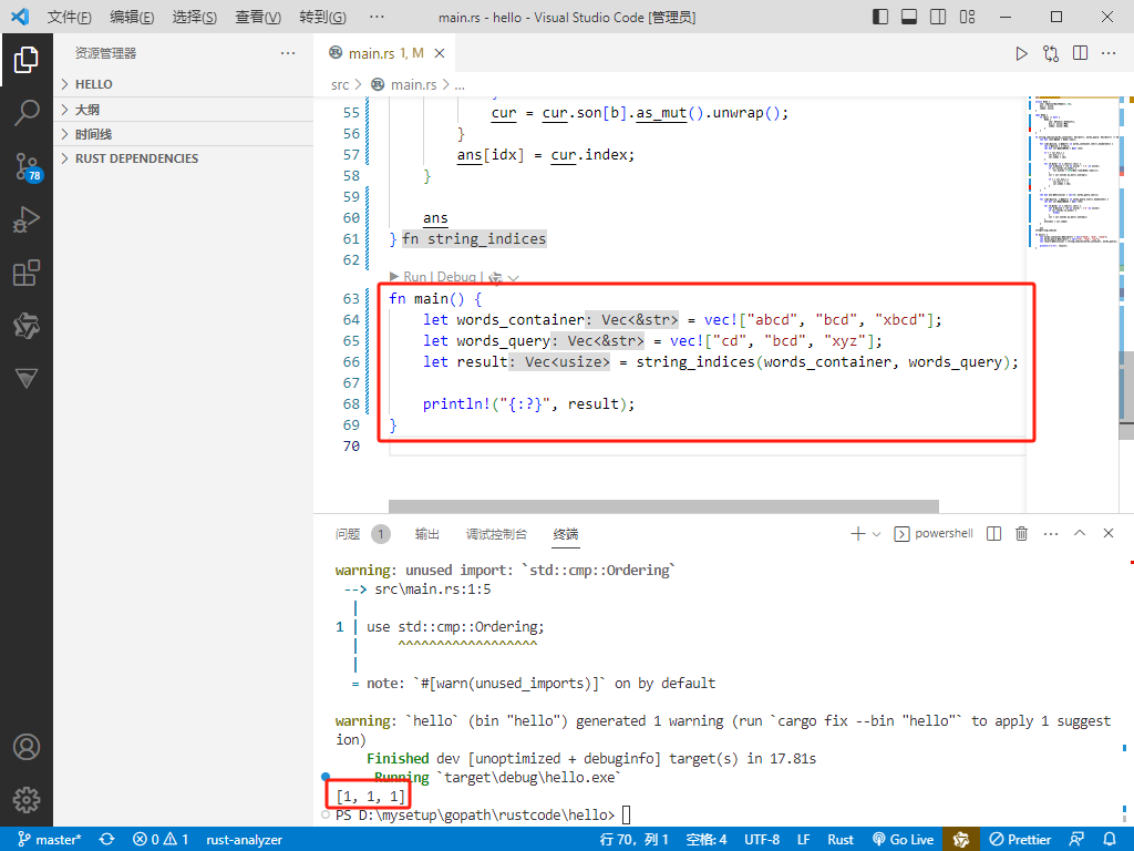 maxLen 将保持为0,bestIndex 将在初始状态。bestIndex 更新为 1,表示第一个有效字符串的索引。5.填充结果数组: