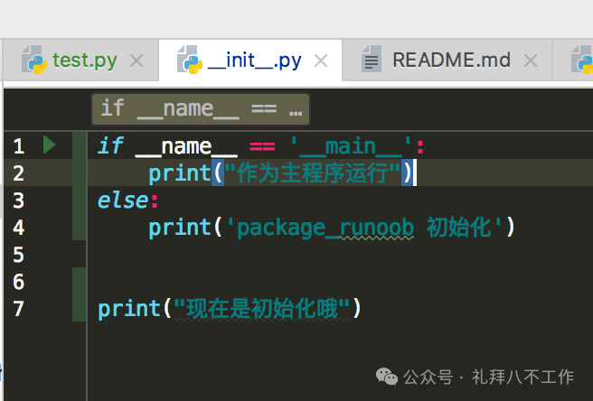 print("%d %s" % (sum(2,3), " <<<"))初始化脚本在引用这个包的时候会自动被调用。只有拥有了初始化脚本才会被python认为这是一个包。