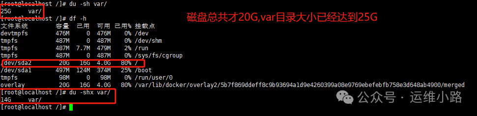 3.du统计数量已经超过df看到的磁盘总量,比如磁盘20G,du统计出来有25G,这个时候可以添加-x参数就可以规避掉这个问题(主要出现在有Docker的环境)
